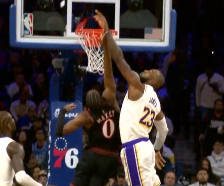 一防一传!詹姆斯大帽马克西直接抓球反击 助飞八村空接打停76人